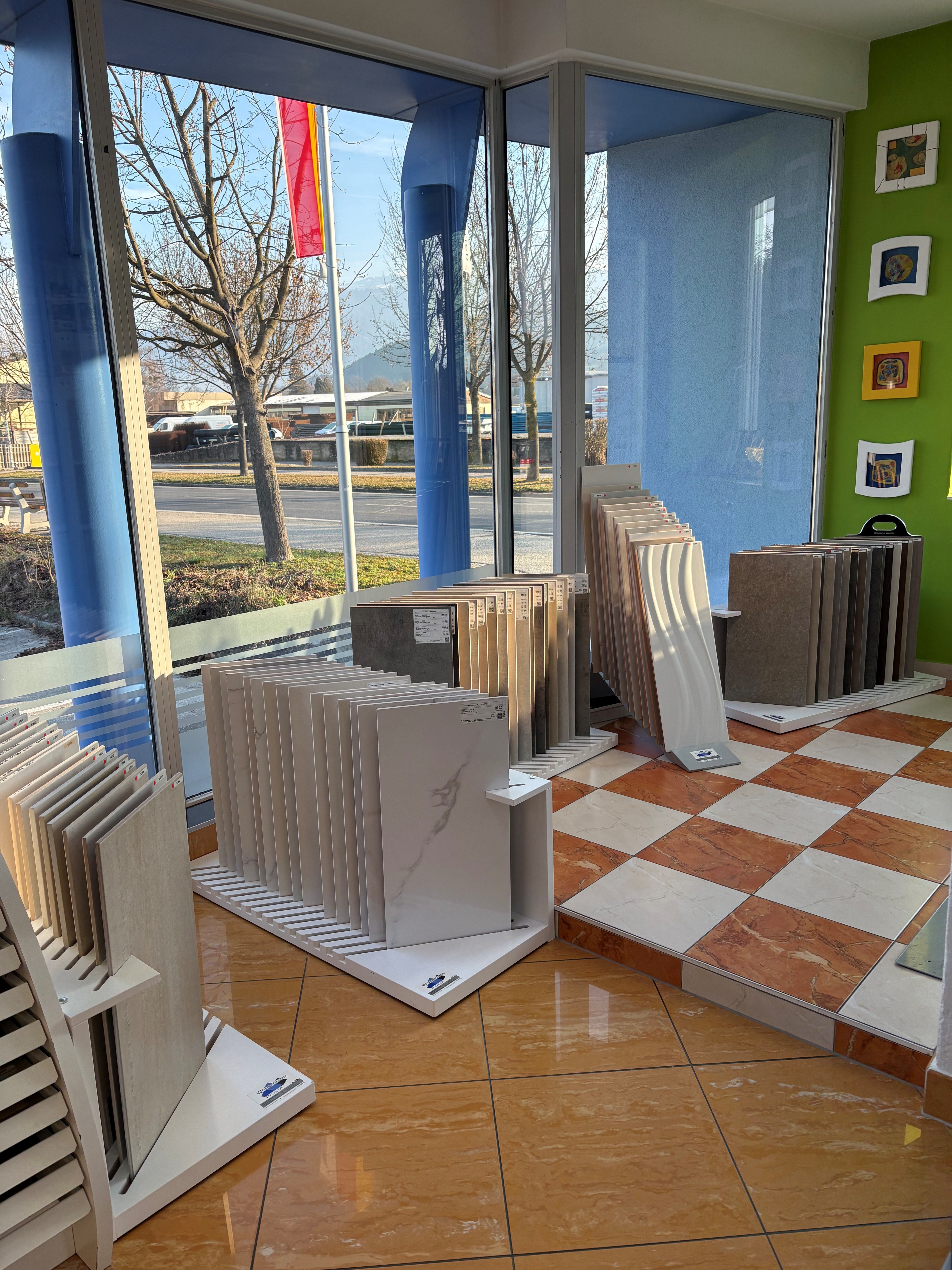 Wir heben uns besonders durch unsere große Auswahl an Produkten und unser Preis-Leistungs-Verhältnis von anderen ab. Auf rund 300 m² Ausstellungsfläche präsentieren wir Fliesen aus Italien, Spanien, Deutschland, Österreich sowie aus China und Saudi-Arabien.